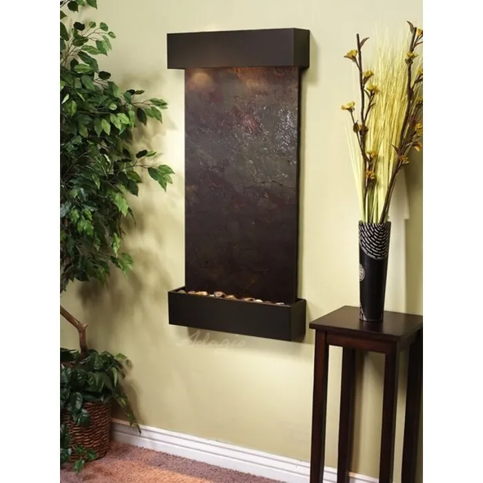 The Whispering Creek Collection offers the tranquility of water in motion falling over a beautiful Natural Slate, Featherstone, or Mirror surface. Adagio Water Features represents the best the industry has to offer. *Comes complete with Polished River Rocks, Halogen lighting, and 1 pump. *Comes with EZ Installation Instructions and DVD. *Simple On/Off switch is located on the top of the feature. *Optional: Stone Selection, LED lights w/ remote, Black Polished Pebbles, Customized Logo and Water Distillers are available. *