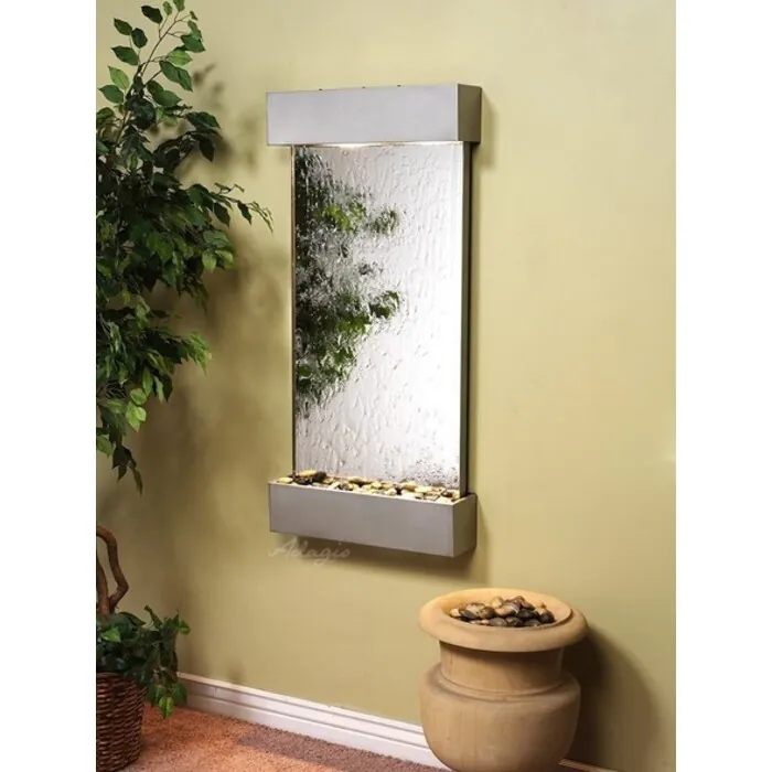 The Whispering Creek Collection offers the tranquility of water in motion falling over a beautiful Natural Slate, Featherstone, or Mirror surface. Adagio Water Features represents the best the industry has to offer. *Comes complete with Polished River Rocks, Halogen lighting, and 1 pump. *Comes with EZ Installation Instructions and DVD. *Simple On/Off switch is located on the top of the feature. *Optional: Stone Selection, LED lights w/ remote, Black Polished Pebbles, Customized Logo and Water Distillers are available. *