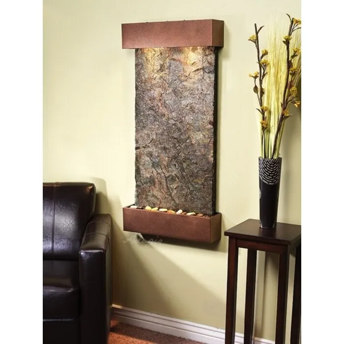 The Whispering Creek Collection offers the tranquility of water in motion falling over a beautiful Natural Slate, Featherstone, or Mirror surface. Adagio Water Features represents the best the industry has to offer. *Comes complete with Polished River Rocks, Halogen lighting, and 1 pump. *Comes with EZ Installation Instructions and DVD. *Simple On/Off switch is located on the top of the feature. *Optional: Stone Selection, LED lights w/ remote, Black Polished Pebbles, Customized Logo and Water Distillers are available. *
