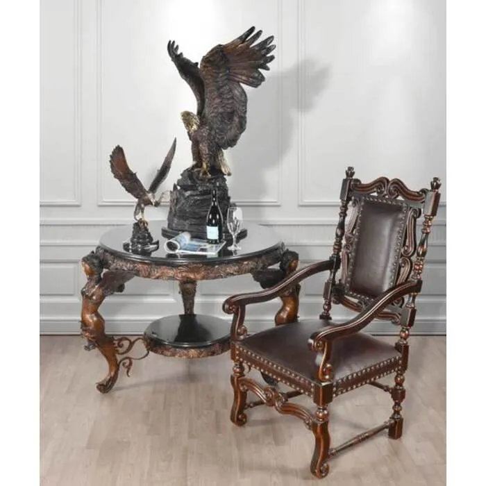 We present from Timeless Creations an exquisite table. The 3 Winged Ladies with Marble Top & Inner Shelf with antique finish is a true standout of artistic excellence. The ideal addition to your home this item features marvelous motif of angel ladies with arched backs and is part of Timeless' truly inspiring Bronze Tables Collection.