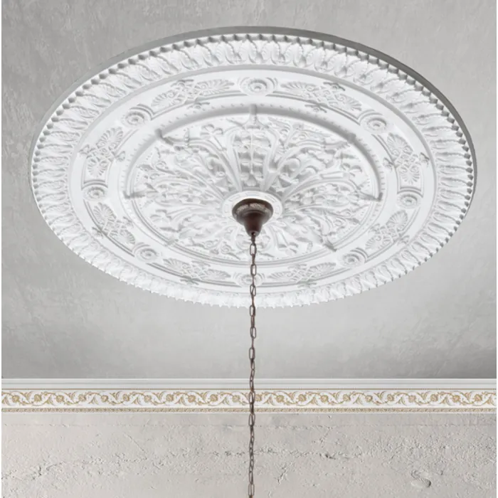 This decorative ceiling medallion is made in light weight , non shrinking polyeurethane and can be installed easily with many types. Of adhesive/glue. Or screws . A classic bit. Of instant architecure a perfect add. On prior to installation. Of many chandelier styles.