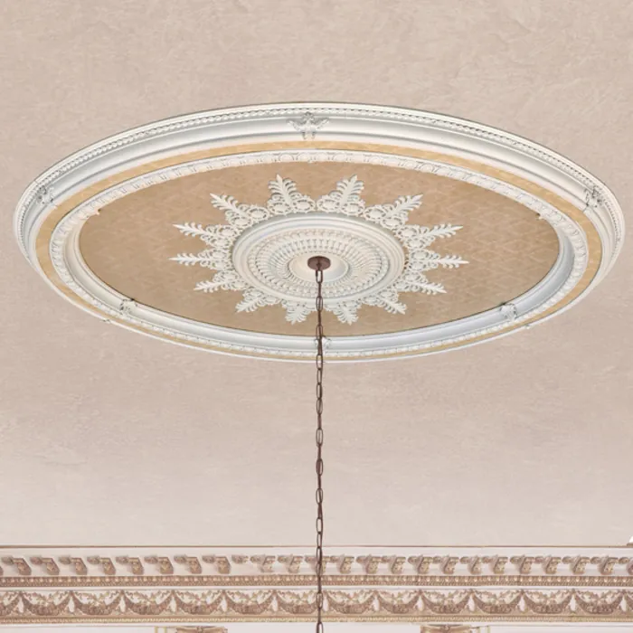 This timeless large classic. Oval ceiling medallion designed with understated elegance in mind comes fully finished and assembled , cast in light weight non shrinking durable poly styrene. This product enables the. Owner to install in a relatively easy process a completely finished 3 dimensional ceiling coffer. Adding sought after architectural detail to plain. Open vast ceiling spaces and a crowning elegance to a fine chandelier installation. They add beauty for the. Owner to enjoy as well as value to your investment . prior to thier creation this affect would have been a very messy and expensive addition requiring carpenters and finishers. installation. Of this design is made even easier as the. Outer ring is designed with raised cabachon detailing and in the. Outer design intermittent spaces have been designed to accept simple hollow wall anchors. Or sheetrock screws , decorative caps are even provided that will cover the screw heads when installed and complete the finished. Outer ring cabachon elements