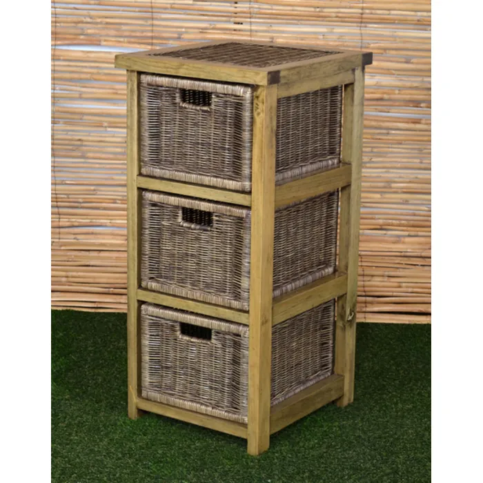 The livingston 3 drawer chest is the perfect accent piece for a lanai bathroom. Or living area looking for additional storage. Featuring solid hardwood construction and three wire-framed rattan drawers.