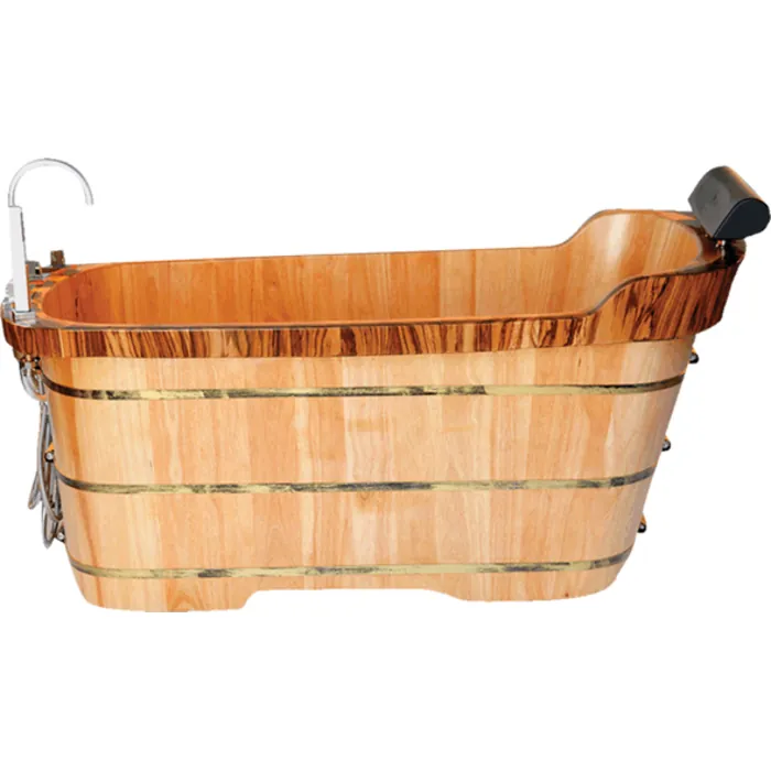 Alfi AB1148 59 inch Free Standing Oak Wood Bath Tub With Chrome Tub Filler