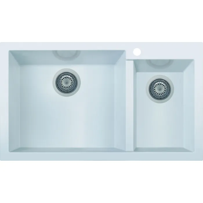 Alfi Brand AB3319DI-W White 34 inch Double Bowl Drop In Granite Composite Kitchen Sink