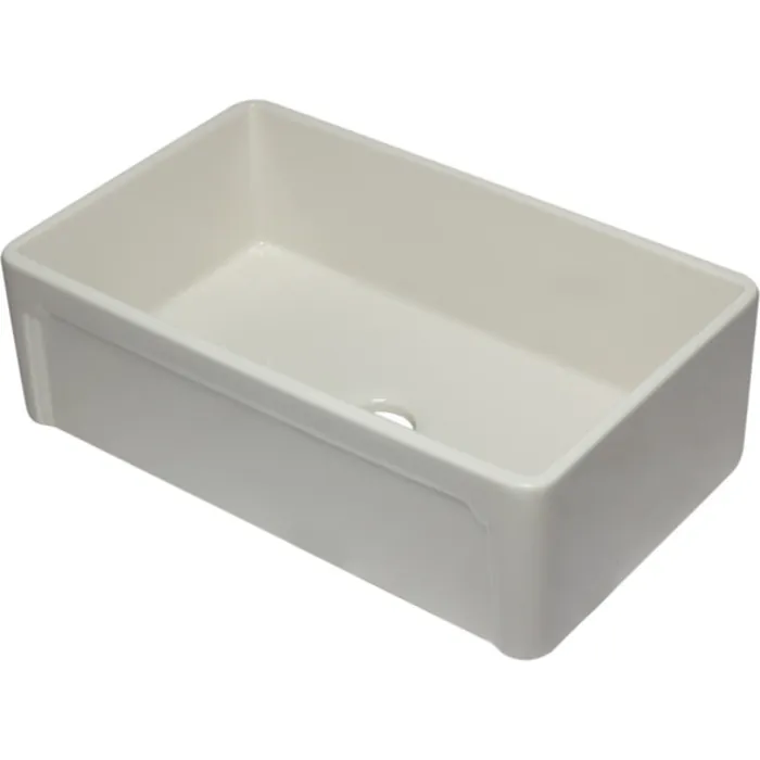- The Benefits of an Authentic farmhouse sink: The Quality of the Finish - The glazing of the sink surface provides both durability and shine over long periods of time. The raw material used, fine fireclay, allows for uniformity in the finish. Durability - The sinks glaze is practically impervious to threatening bacteria from food preparation. Stains do not penetrate the glaze and can be easily wiped away. Acids and chemical cleaners have virtually no adverse effect. Coffee stains cigarette burns and other daily occurances that would adversely effect kitchen sinks made from other materials are easily wiped away on fireclay sinks. Scratches - These sinks are not adversely affected by scratches from pots pans knifes etc. Thermal Shock - Thermal Shock (very hot or very cold water) has no effect whatsoever on the sink.