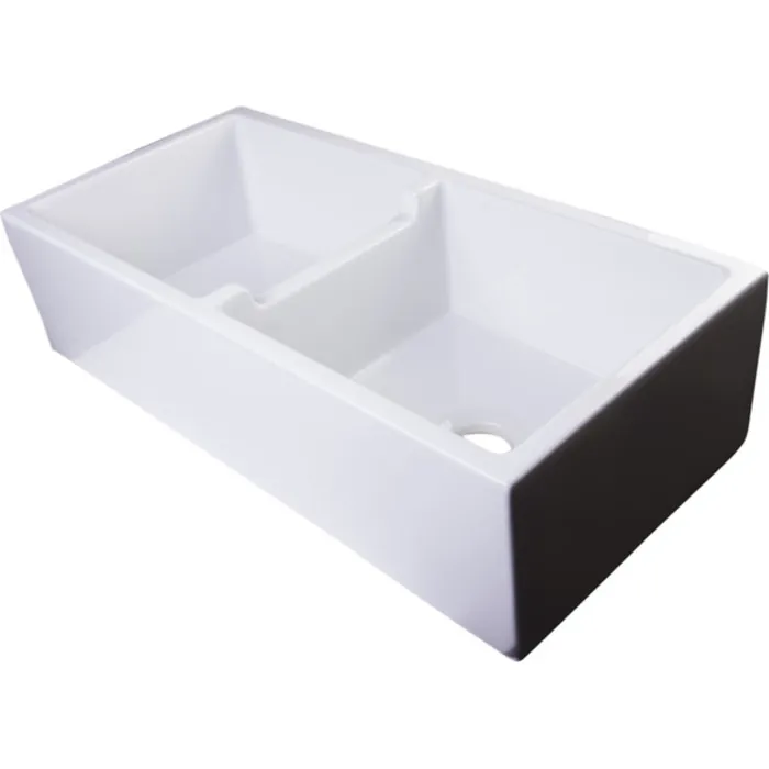 Alfi Ab3918-w 39 inch White Smooth Thick Wall Fireclay Double Bowl Farm Sink AB3918DB-W