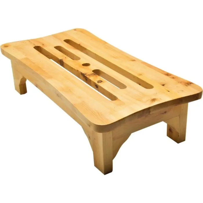 - Cutout slots on the top of the stool help water drain off the surface of the wood, keeping your stepping stool dry.