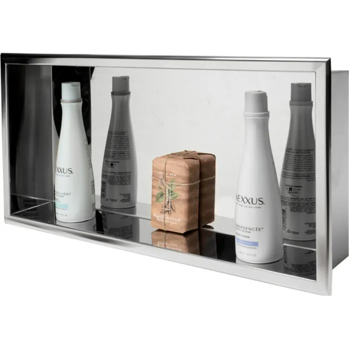 - Unlike traditional niches that require extra labor and expensive tile work, this niche is fully finished and ready to mount into your wall opening. Save hundreds of dollars over tiled niches and enjoy the sleek clean look of stainless steel.