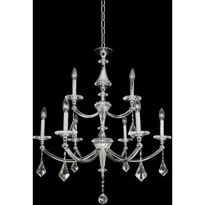The distinctive charm of the Floridia is the bright baubles that hang in perfect symmetry from the solid brass frame with Polished Chrome finish. The brilliance of the Firenze crystal drops and multi-faceted crystal bobeches create a contemporary crystal(6+3) Light 2 Tier ChandelierE12 Candelabra0Dimmable: YesDimmer Type: Refer to bulb manufacturer for compatibilitySockets: 9Wattage: 60Lamp Type: E12 CandelabraBulbs Incl#: NoMax Height: 34