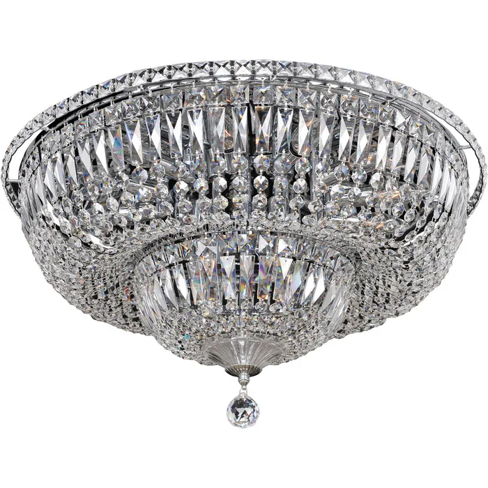This Empire Style Series features jeweled Firenze Crystal bandings and cascades of Firenze jewels.16 Light Flush MountE12 Candelabra0Dimmable: YesDimmer Type: Refer to bulb manufacturer for compatibilitySockets: 16Wattage: 40Lamp Type: E12 CandelabraBulbs Incl#: NoMax Height: 13.5