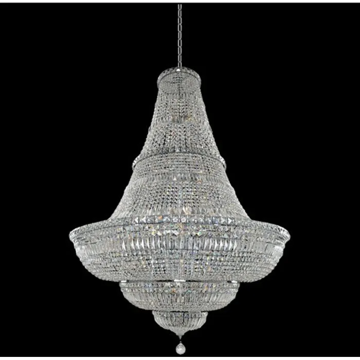 This Empire Style Series features jeweled Firenze Crystal bandings and cascades of Firenze jewels.48" PendantE12 Candelabra0Dimmable: YesDimmer Type: Refer to bulb manufacturer for compatibilitySockets: 56Wattage: 40Lamp Type: E12 CandelabraBulbs Incl#: NoMax Height: 71