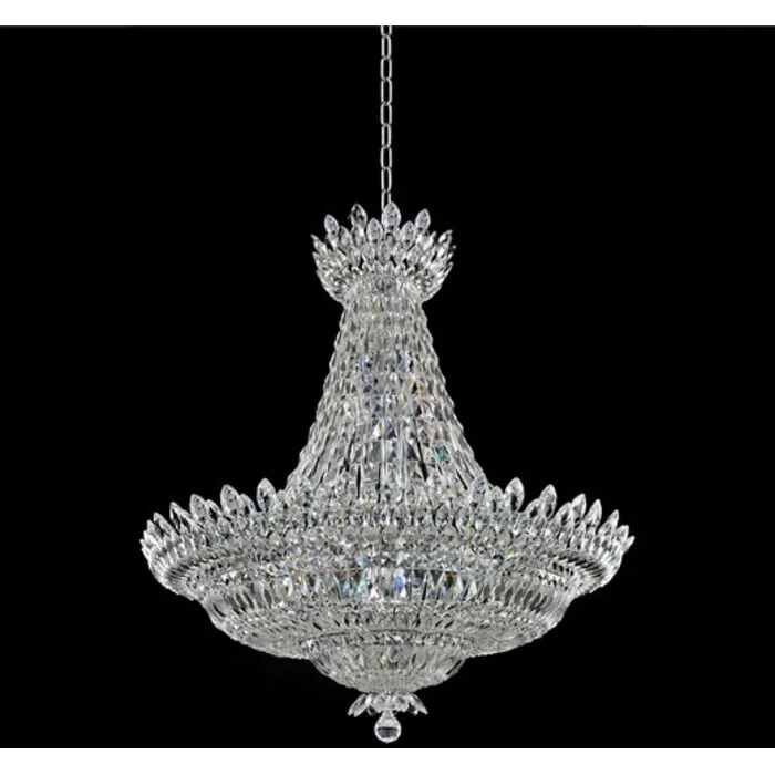 The Empire Style Frames of the Belluno feature artichoke crystal blossomed galleries and tapered cascades of Firenze rectangular crystals.40" PendantE12 Candelabra0Dimmable: YesDimmer Type: Refer to bulb manufacturer for compatibilitySockets: 32Wattage: 40Lamp Type: E12 CandelabraBulbs Incl#: NoMax Height: 48