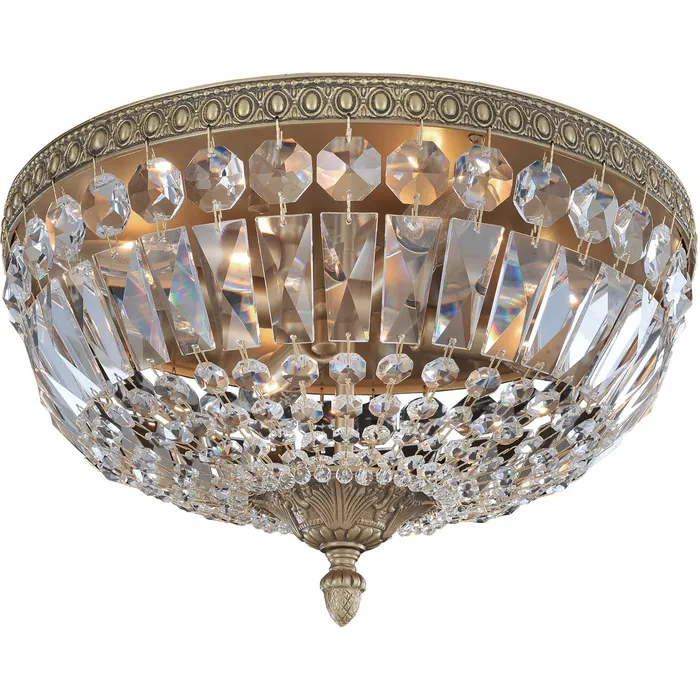 Lemire is a classic crystal basket flush mount grouping. Features ornate bandings and font. The crystal dressing tapers in size to allow for full presentation of the crystals which in turn obscures the light source.4 Light Flush MountE12 Candelabra0Dimmable: YesDimmer Type: Refer to bulb manufacturer for compatibilitySockets: 4Wattage: 40Lamp Type: E12 CandelabraBulbs Incl#: NoMax Height: 8