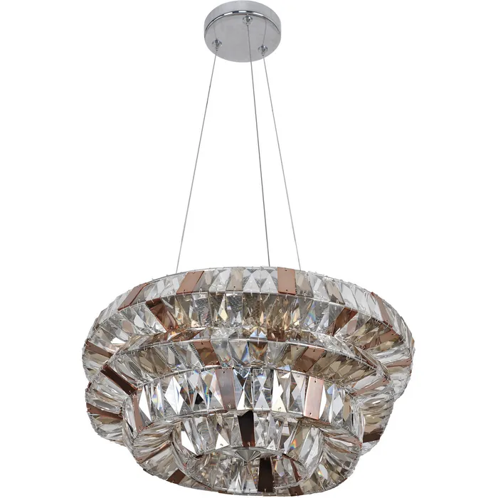 Inspired by Frank Gehry's architectural designs, this collection features an eclectic framework, accentuated with faceted rectangular clear and bronze crystals along with metallic panels. This collection comes fully dressed with limited assembly required18" PendantE12 Candelabra0Dimmable: YesDimmer Type: Refer to bulb manufacturer for compatibilitySockets: 6Wattage: 40Lamp Type: E12 CandelabraBulbs Incl#: NoMax Height: 16