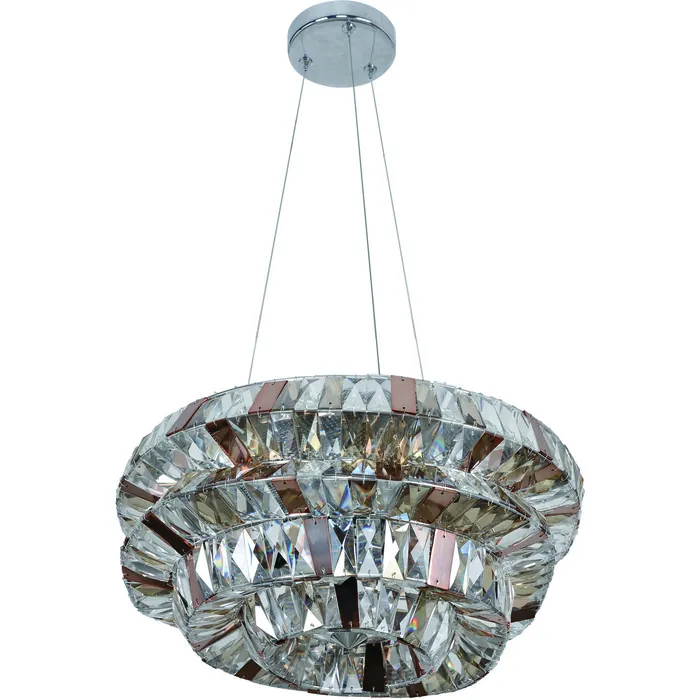 Inspired by Frank Gehry's architectural designs, this collection features an eclectic framework, accentuated with faceted rectangular clear and bronze crystals along with metallic panels. This collection comes fully dressed with limited assembly required31" PendantE12 Candelabra0Dimmable: YesDimmer Type: Refer to bulb manufacturer for compatibilitySockets: 15Wattage: 40Lamp Type: E12 CandelabraBulbs Incl#: NoMax Height: 20