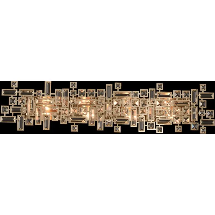 The Vermeer Collection was inspired by the De Stijl Art Movement founded in the Netherlands during the early 20th century. These Clear Prism crystals are arranged in unique patterns that embody the De Stijl principles of rectilinear lines and asymmetry th38" Bath LightE12 Candelabra0Dimmable: YesDimmer Type: Refer to bulb manufacturer for compatibilitySockets: 8Wattage: 40Lamp Type: E12 CandelabraBulbs Incl#: NoMax Height: 9