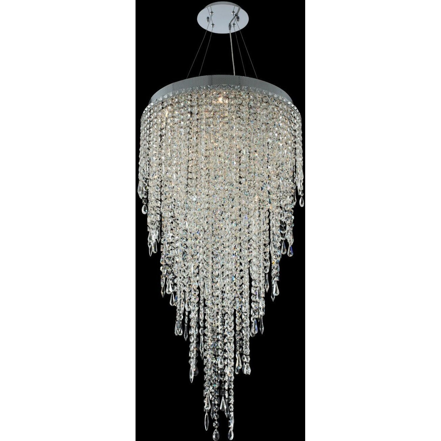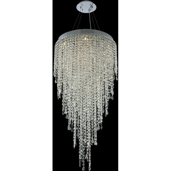 The Tenuta Collection features precision stainless steel construction in two distinctive looks. Choose from a mixed metal gold and chrome chain accents or all clear Firenze Crystal. Offered in a Polished Chrome finish.24" Convertible Pendant / Flush MountGU10Flush Mount0Dimmable: YesDimmer Type: Refer to bulb manufacturer for compatibilitySockets: 10Wattage: 50Lamp Type: GU10Bulbs Incl#: NoMax Height: 46