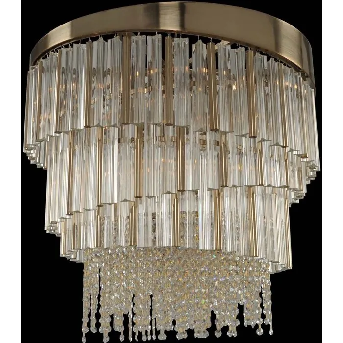 It is a wow from the Brushed Champagne Finish to the Spiral Framework, accented with a mix of tri-sided crystal rods, crystal drops and chimes that match the finish of the frame.27" PendantE12 Candelabra0Dimmable: YesDimmer Type: Refer to bulb manufacturer for compatibilitySockets: 9Wattage: 40Lamp Type: E12 CandelabraBulbs Incl#: NoMax Height: 26