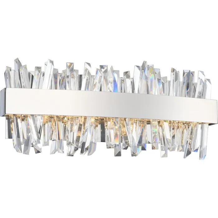 Glacier is the only way to describe this eye catching series. Polished Chrome or Brushed Champagne Gold frames are backlit by LED Lighting and spears of Ice Shaped Crystals which make this one of the unique light forms in the market. Available in Polishe18" Bath LightLED0Dimmable: YesDimmer Type: ELV (not included)Wattage: 18Lamp Type: LEDColor Rendering Index (CRI): 80Bulbs Incl#: YesCorrelated Color Temperature (K): 2700Lumens (Lm): 1620