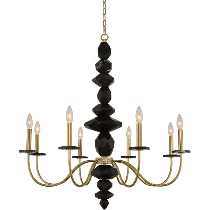 The Piedra Collection features an organically cut black marble column stacked to form the center column and font. The frame is highlighted with a trendy brushed brass finish.8 Light ChandelierE12 Candelabra0Dimmable: YesDimmer Type: Refer to bulb manufacturer for compatibilitySockets: 8Wattage: 60Lamp Type: E12 CandelabraBulbs Incl#: NoMax Height: 36