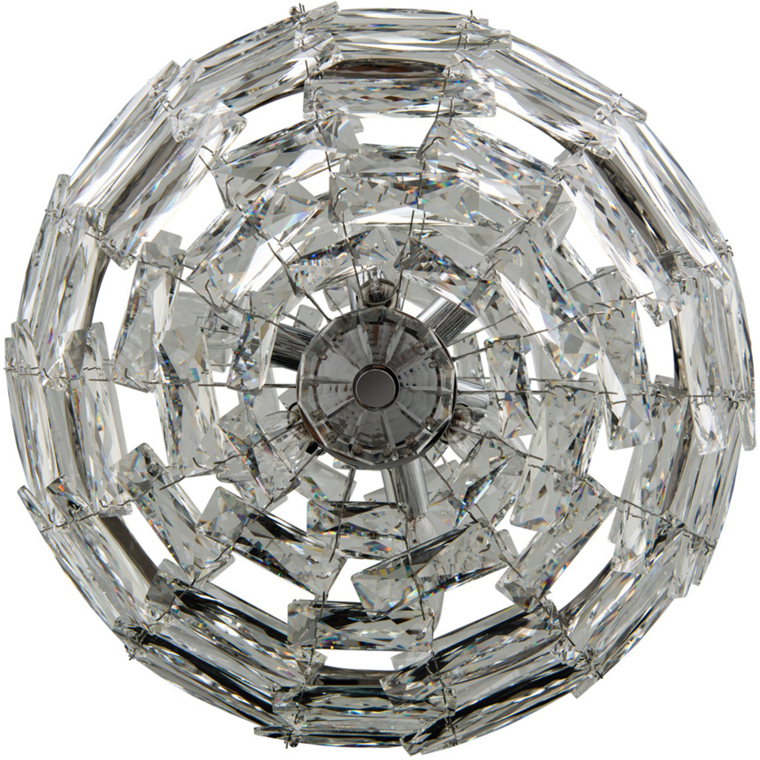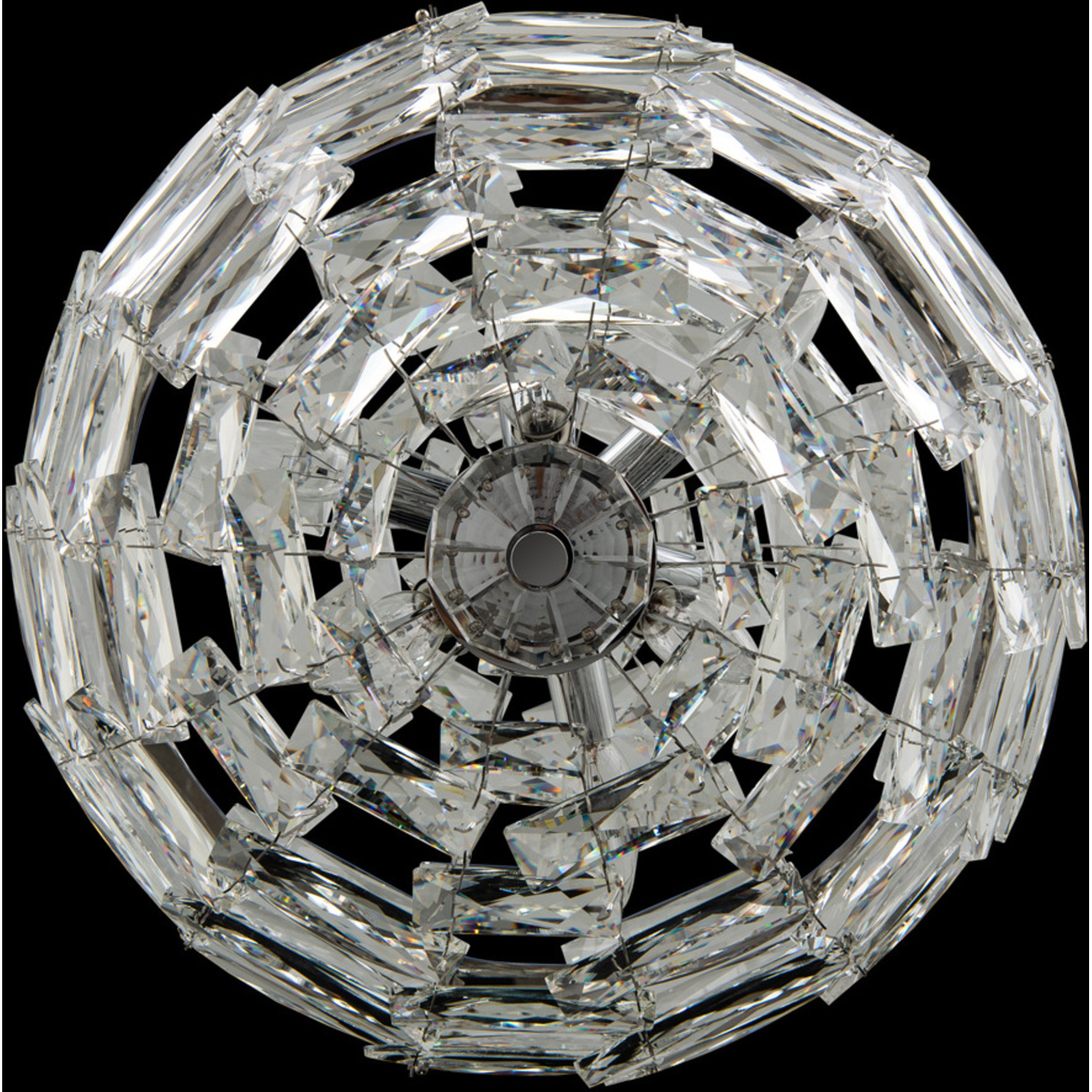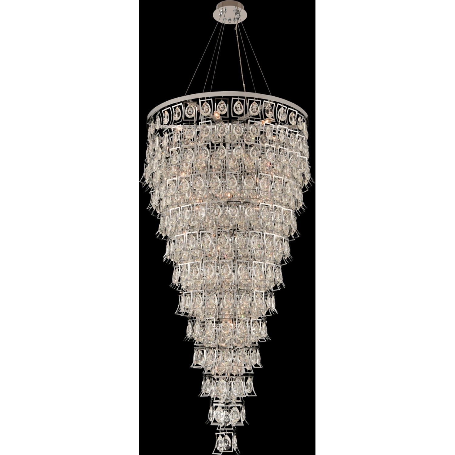 A faceted teardrop and concave crystal is suspended within a curved shadow box. Featuring a tapered waterfall styled frame is available in polished chrome or a brushed brass finish. It is sure to be the center of attention in any modern décor.36" Foyer PendantE12 Candelabra0Dimmable: YesDimmer Type: Refer to bulb manufacturer for compatibilitySockets: 28Wattage: 60Lamp Type: E12 CandelabraBulbs Incl#: NoMax Height: 70