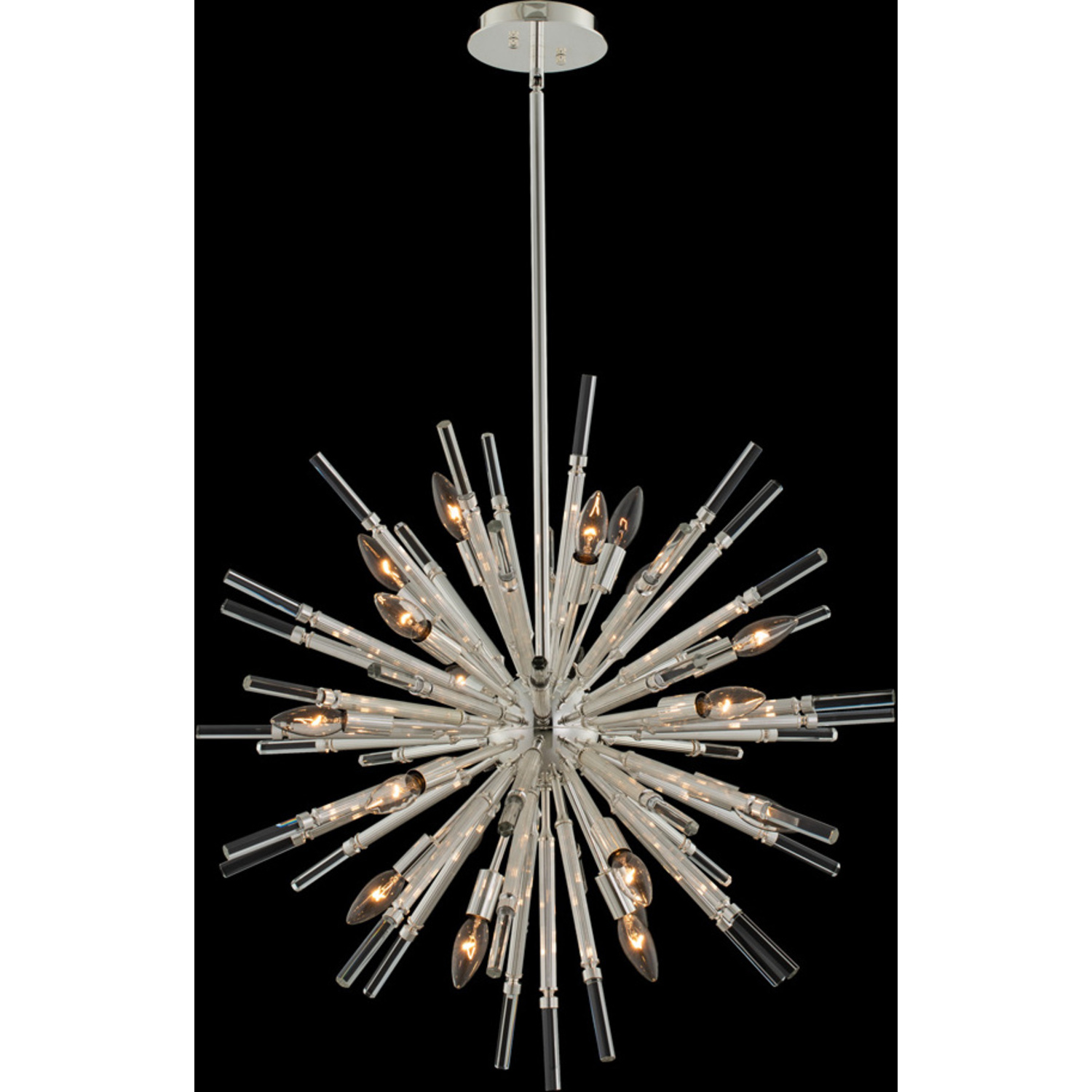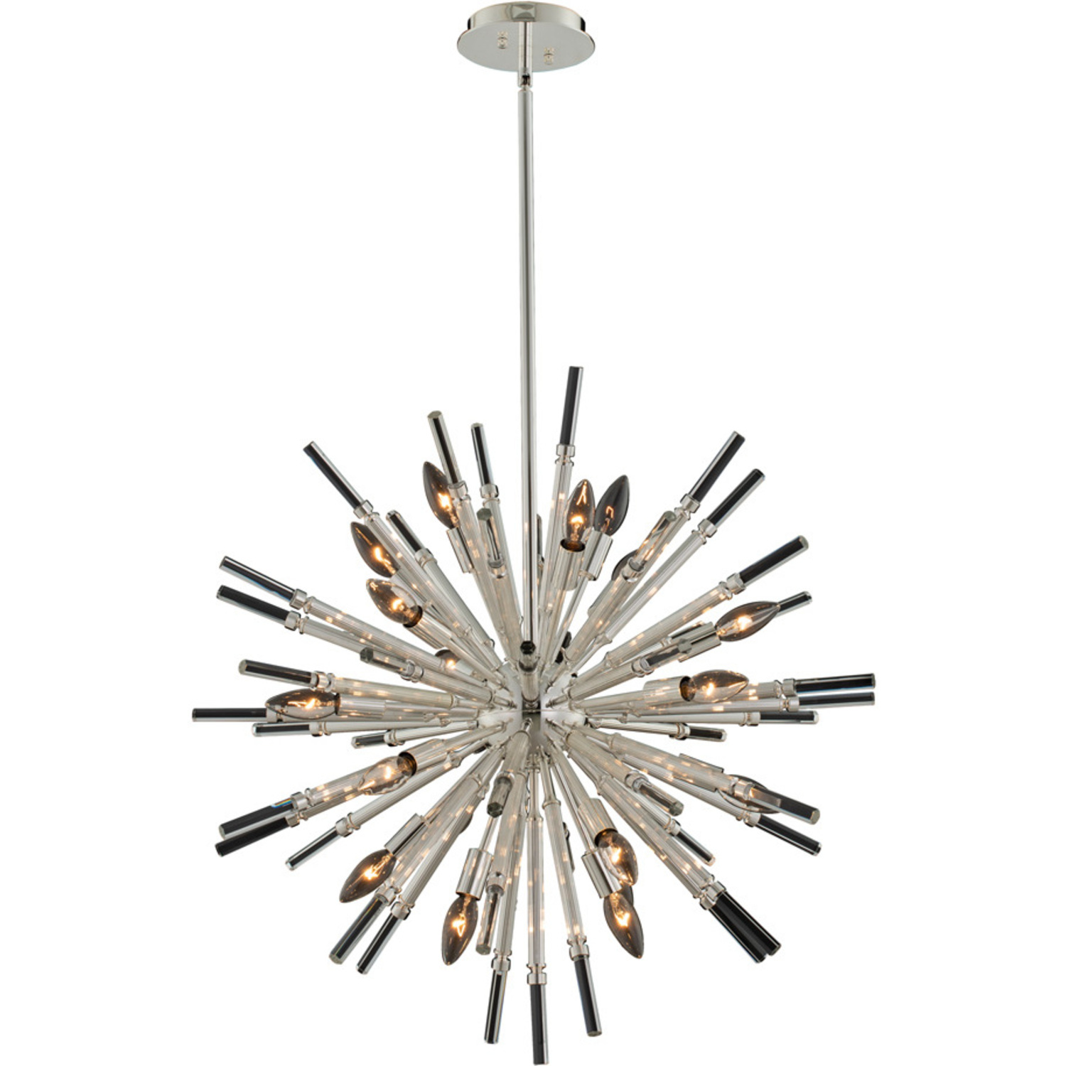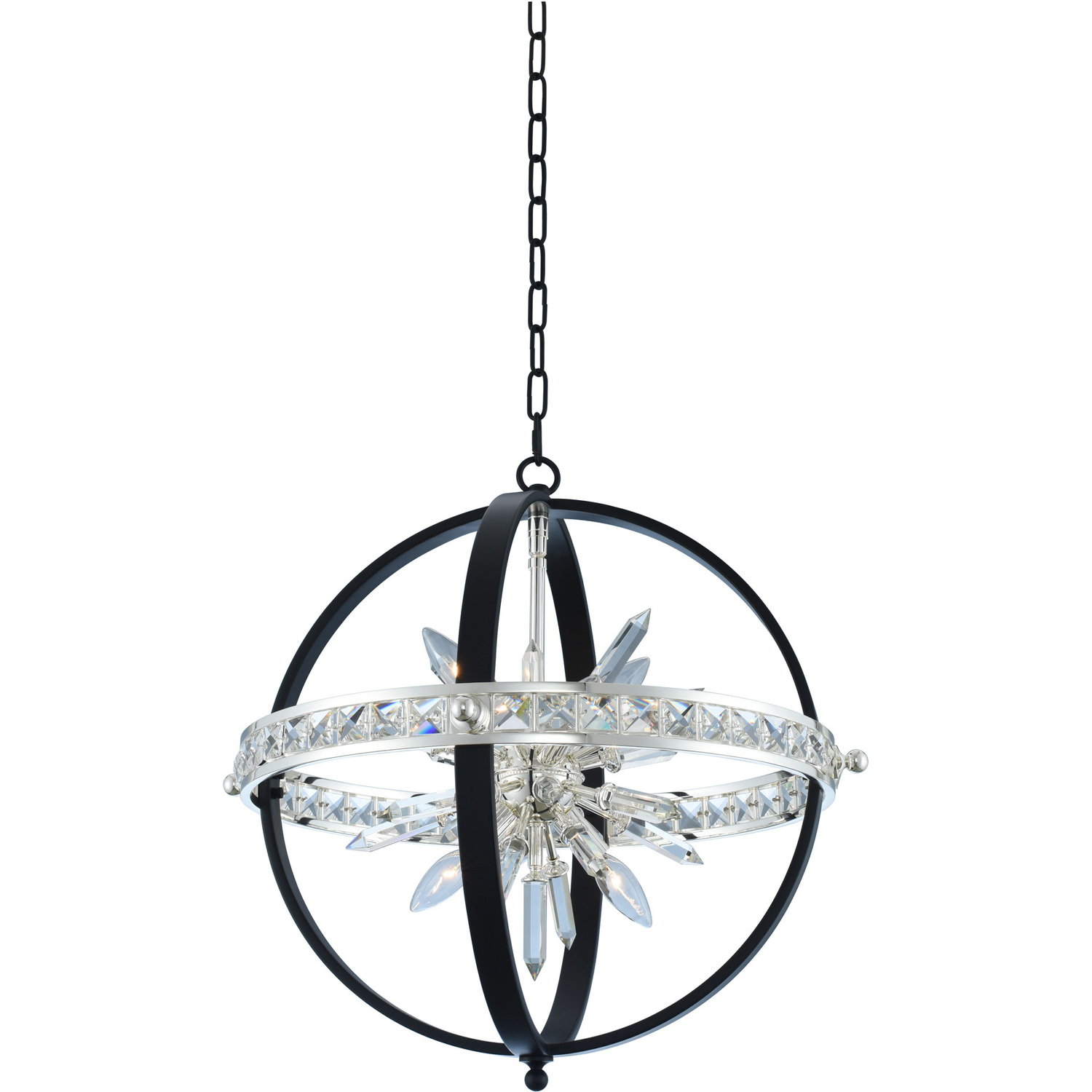 Spiky Firenze Crystal Sputnik center highlights this modern open orb shape including a simple single jeweled band.23" PendantE12 CandelabraChandelier0Dimmable: YesDimmer Type: Refer to bulb manufacturer for compatibilitySockets: 6Wattage: 40Lamp Type: E12 CandelabraBulbs Incl#: NoMax Height: 23