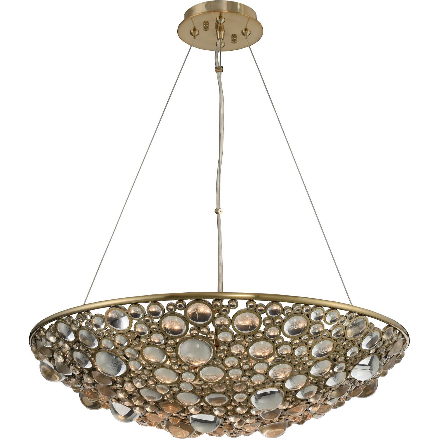 The organically inspired Ciotollo Collection features K9 Crystal glass baubles in a modern frame with a Brushed Champagne Gold finish. Fixture comes fully assembled.24" PendantE12 Candelabra0Dimmable: YesDimmer Type: Refer to bulb manufacturer for compatibilitySockets: 8Wattage: 60Lamp Type: E12 CandelabraBulbs Incl#: NoMax Height: 6