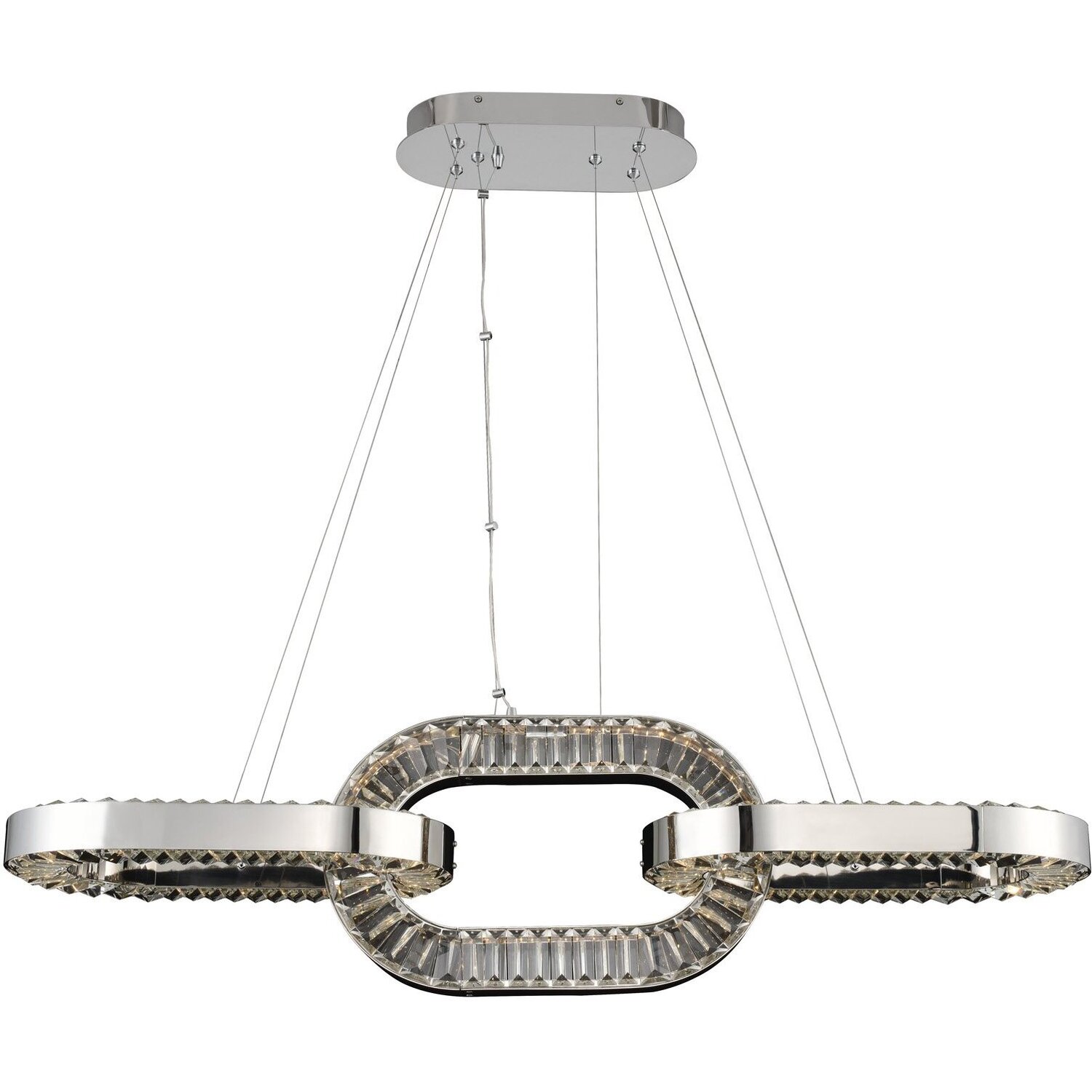Catena Collection chain link inspired design features LED, Firenze crystal in a cool Polished Chrome finish. Collection is fully dressed for easy installation.Large FoyerLED0Dimmable: YesDimmer Type: Refer to bulb manufacturer for compatibilityWattage: 88Lamp Type: LEDBulbs Incl#: YesMax Height: 62