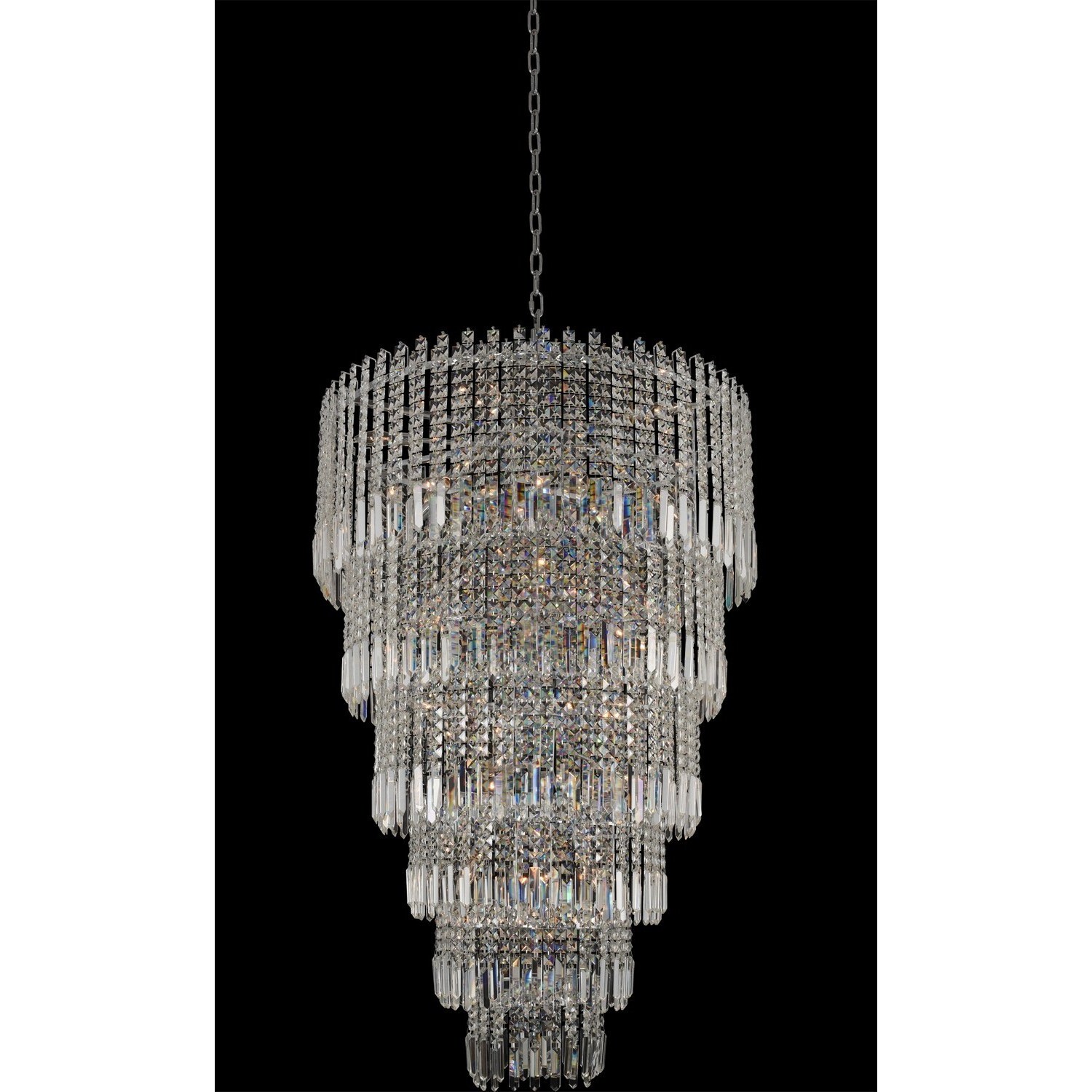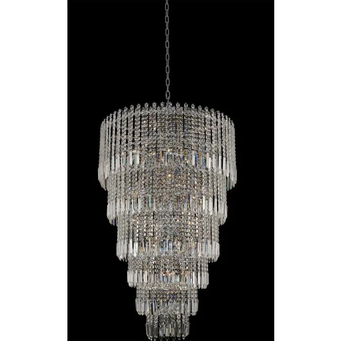 The Pandoro Collection features edgy Firenze Crystal Spears and Squares in multi tier shapes with a Polished Chrome finish.33" FoyerE12 Candelabra0Dimmable: YesDimmer Type: Refer to bulb manufacturer for compatibilitySockets: 30Wattage: 60Lamp Type: E12 CandelabraBulbs Incl#: NoMax Height: 59