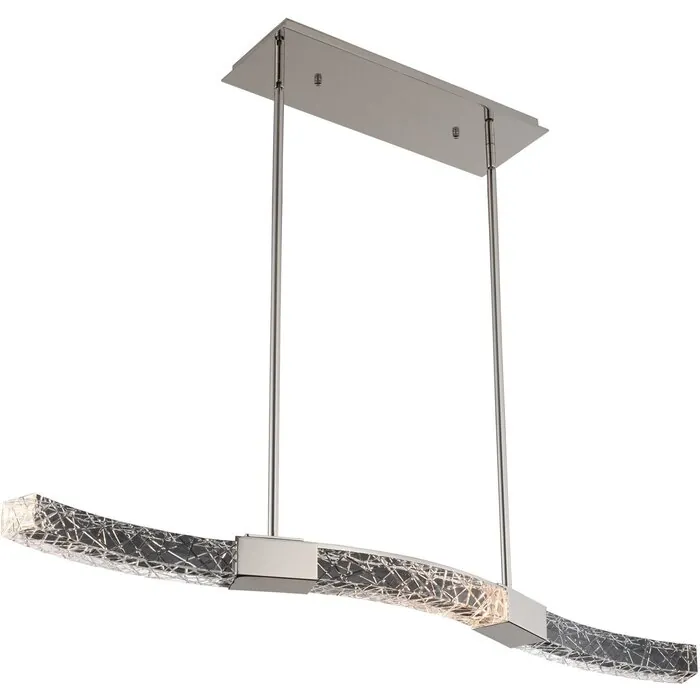 Sleek contemporary shapes created by solid hand-cut Firenze crystal rectangular rods in a simple Polished Nickel finish. Featuring driverless LED's.40" LED IslandLEDPendantIncludes (2) 6" (2) 12" and (2) 24" StemsDimmable: YesDimmer Type: ELV (not included)Sockets: 4Wattage: 16Lamp Type: LEDColor Rendering Index (CRI): 90Bulbs Incl#: YesCorrelated Color Temperature (K): 3000Lumens (Lm): 1200