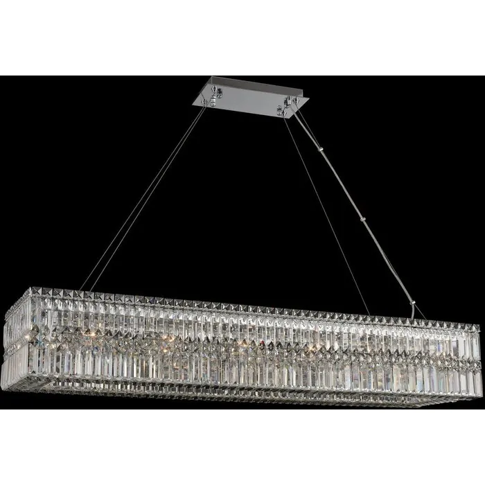 A modern classic, the Rettangolo Collection features a Polished Chrome finish with Square & Baguette Firenze crystals.50" IslandE12 Candelabra0Dimmable: YesDimmer Type: Refer to bulb manufacturer for compatibilitySockets: 14Wattage: 40Lamp Type: E12 CandelabraBulbs Incl#: NoMax Height: 8