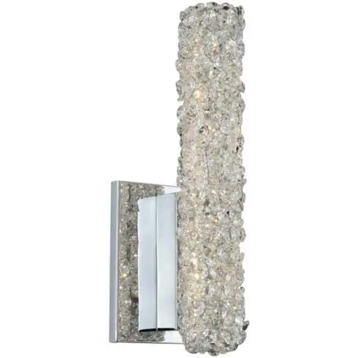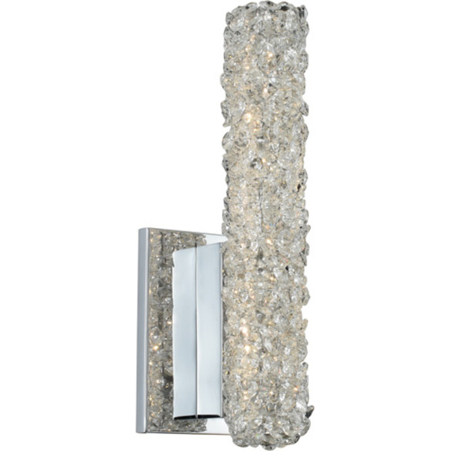 Contemporary design with an elegant silhouette wrapped in Firenze crystal strands. Featured in a polished chrome finish and fixtures arrive dressed and ready for easy installation.Short LED Wall SconceLEDBath0Dimmable: YesDimmer Type: ELV (not included)Wattage: 6Lamp Type: LEDColor Rendering Index (CRI): 80Bulbs Incl#: YesCorrelated Color Temperature (K): 2700Lumens (Lm): 540