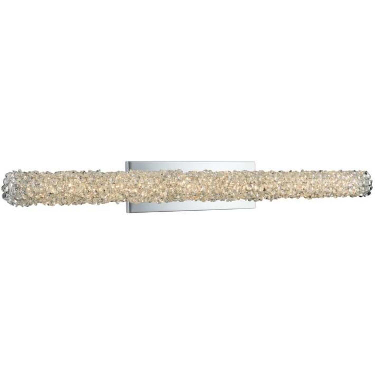 Contemporary design with an elegant silhouette wrapped in Firenze crystal strands. Featured in a polished chrome finish and fixtures arrive dressed and ready for easy installation.38" LED BathLEDVanity0Dimmable: YesDimmer Type: ELV (not included)Wattage: 28Lamp Type: LEDColor Rendering Index (CRI): 80Bulbs Incl#: YesCorrelated Color Temperature (K): 2700Lumens (Lm): 2520