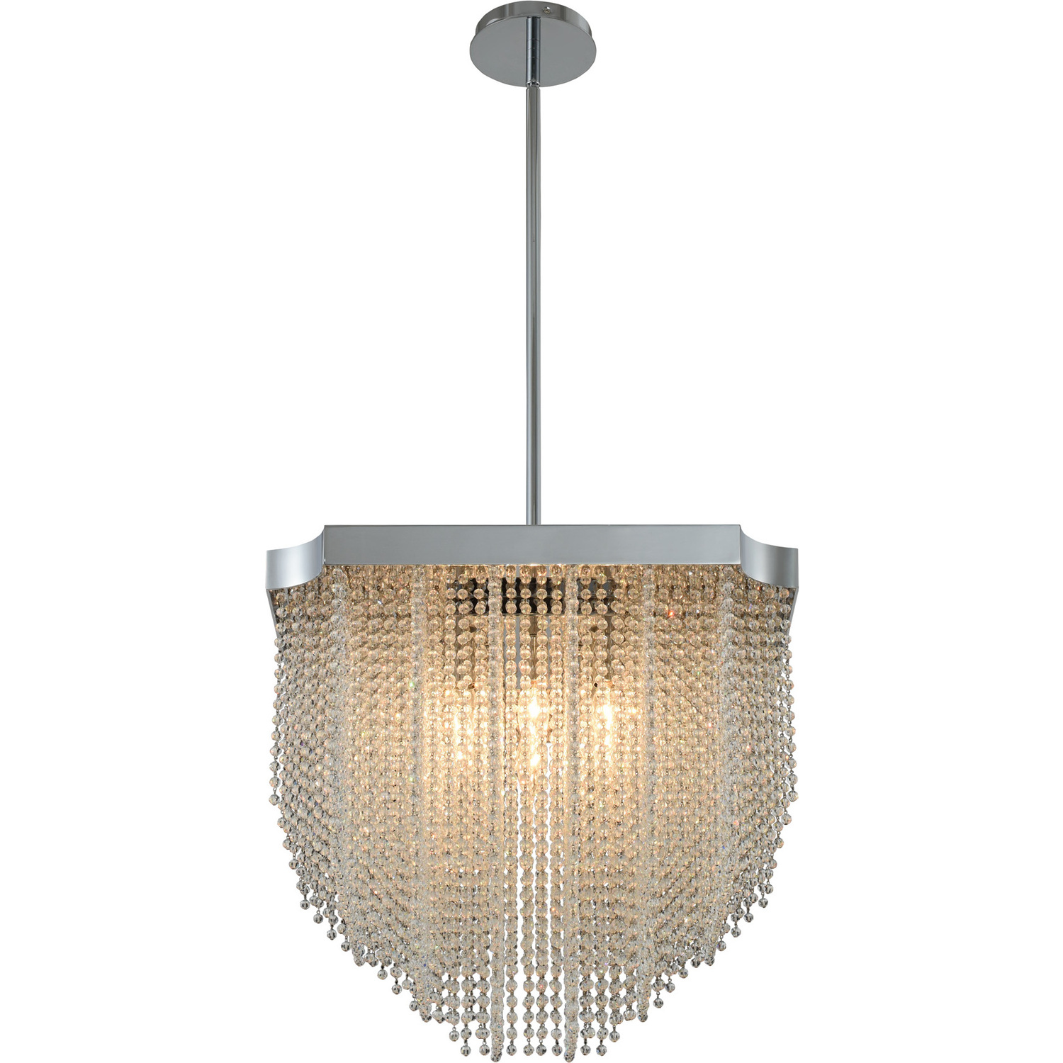 The Tenda Collection features architecturally inspired design with clean lines in a polished chrome plated finish with square shaped patterns created by Firenze crystal strands. This collection comes fully dressed for easy installation.20" PendantE12 CandelabraChandelierIncludes (1) 6" (1) 12" (1) 24" StemsDimmable: YesDimmer Type: Refer to bulb manufacturer for compatibilitySockets: 8Wattage: 40Lamp Type: E12 CandelabraBulbs Incl#: NoMax Height: 24