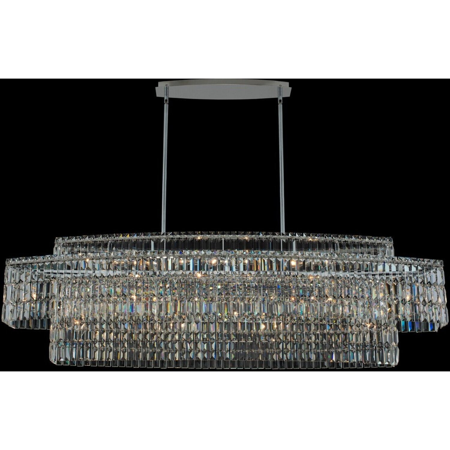 Strands of faceted, rectangular crystal bricks hang freely in a multilevel design in the Livelli Collection. Refracting light from the inside, this modern crystal family is dimensional and full of tasteful sparkle in a Polished Chrome frame.60" Island LightE12 CandelabraLinearIncludes (2) 6" (2) 12" (2) 24"Dimmable: YesDimmer Type: Refer to bulb manufacturer for compatibilitySockets: 15Wattage: 40Lamp Type: E12 CandelabraBulbs Incl#: NoMax Height: 23