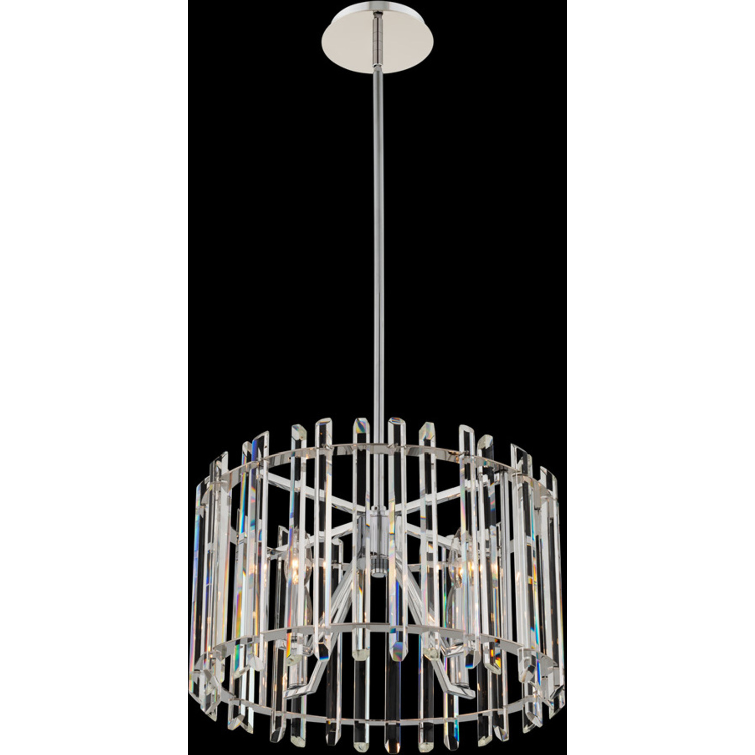 Viano's hexagonal crystal bars are suspended in the air by two Chrome (010) laser cut rings. Viano is light and airy yet it will be a statement piece in your space. Crystals slide into the stainless steel frame for easy installation and maintenance.17" PendantCand.ChandelierIncludes (1) 6" (1) 12" and (1) 24" StemsDimmable: YesDimmer Type: Refer to bulb manufacturer for compatibilitySockets: 4Wattage: 40Lamp Type: Cand.Bulbs Incl#: NoMax Height: 19