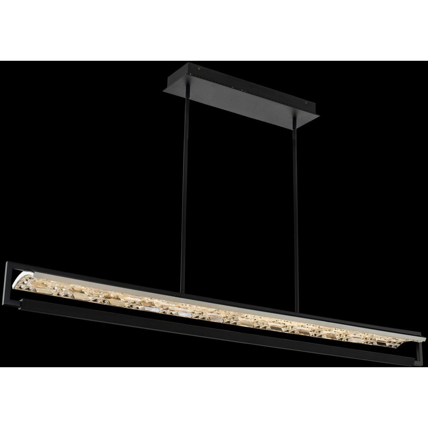 LED faceted crystal takes center stage in the Cappucio collection. A sleek, contemporary silhouette with a Matte Black and Chrme finish combo complements the sparkle and shine of the crystal, making for a statement piece of lighting in a kitchen or dinin59" LED IslandLEDLinearIncludes (2) 6" (2) 12" (2) 24"Dimmable: YesDimmer Type: Refer to bulb manufacturer for compatibilityWattage: 59Lamp Type: LEDColor Rendering Index (CRI): 80Bulbs Incl#: YesCorrelated Color Temperature (K): 3000Lumens (Lm): 840