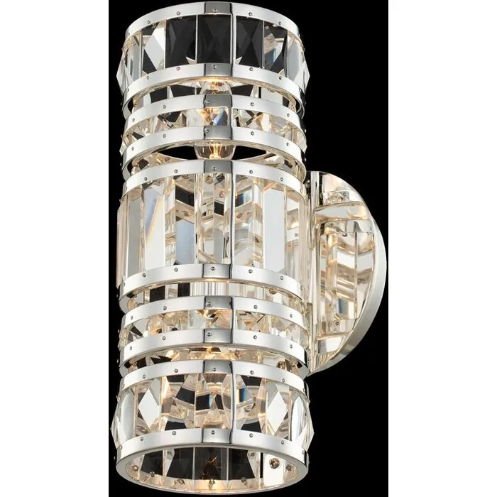 The Strato Collection personifies casual luxury with its smart use of chrome and crystal. Thick chrome bands support hand-etched Firenze crystal, visually articulating the tension between the strength of the steel band and the delicate beauty of the cryst6" Wall SconceE12 CandelabraBath0Dimmable: YesDimmer Type: Refer to bulb manufacturer for compatibilitySockets: 2Wattage: 40Lamp Type: E12 CandelabraBulbs Incl#: NoMax Height: 15