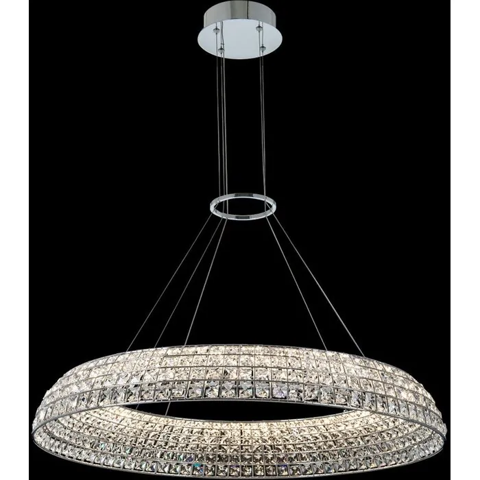 Allegri’s contemporary Nuvole Collection circles the square. Each Firenze crystal is situated within an individual chrome square, allowing enough movement to ensure brilliant refracted light. The overall gently sloping domed shape was designed specificall36" LED PendantLEDChandelier0Dimmable: YesDimmer Type: ELVWattage: 65Lamp Type: LEDColor Rendering Index (CRI): 80Bulbs Incl#: YesCorrelated Color Temperature (K): 3000Lumens (Lm): 5850