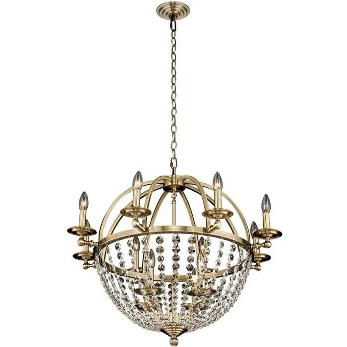 The Pendolo Collection is a classic crystal chandelier that compliments current interiors. It is traditional yet light and clean. The Brushed Champagne Gold (038) finish gives an understated, tailored look.8 Arm Orb Chandelier (4+8 Light)E12 CandelabraPendant0Dimmable: YesDimmer Type: Refer to bulb manufacturer for compatibilitySockets: 12Wattage: 40Lamp Type: E12 CandelabraBulbs Incl#: NoMax Height: 26