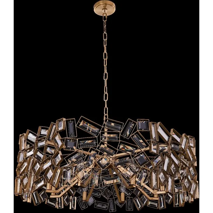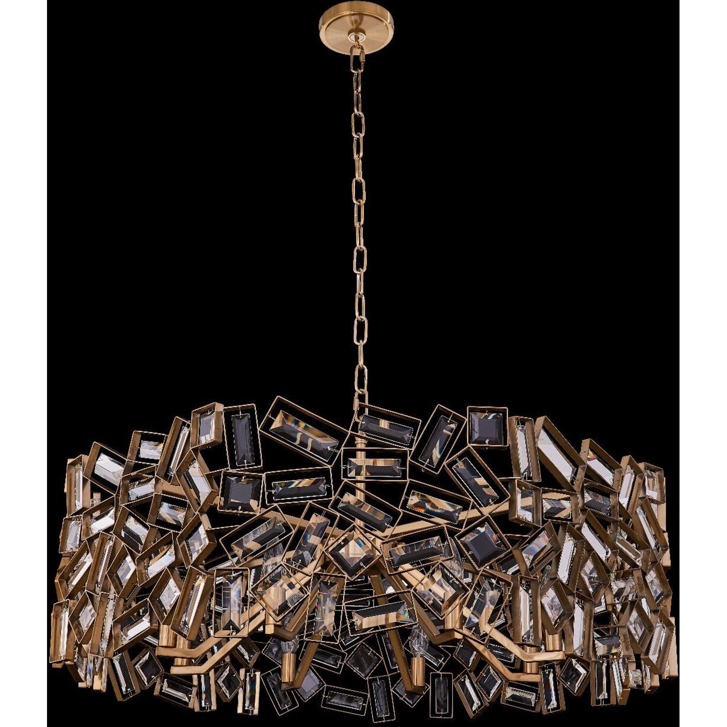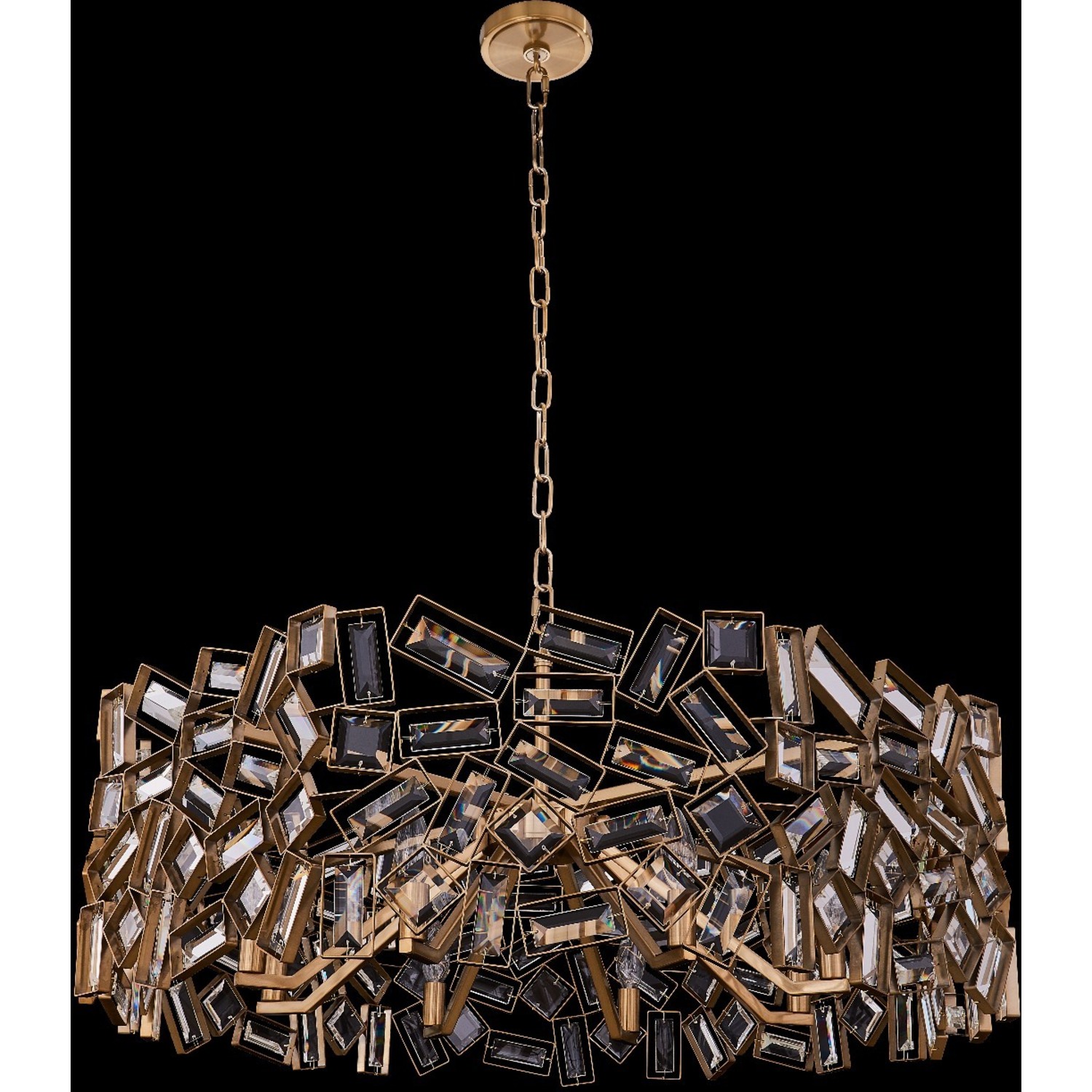 Modular inspired design with a futuristic appeal. The Inclanata collection plays with shapes using classic clear rectangular and square Firenze ™ crystal baguettes in a warm Winter Brass (044) finish.37 in PendantE12 CandelabraDimmable: YDimmer Type: Refer to bulb manuf.Sockets: 8Wattage: 40Lamp Type: E12 CandelabraBulbs Incl#: NoMax Height: 17