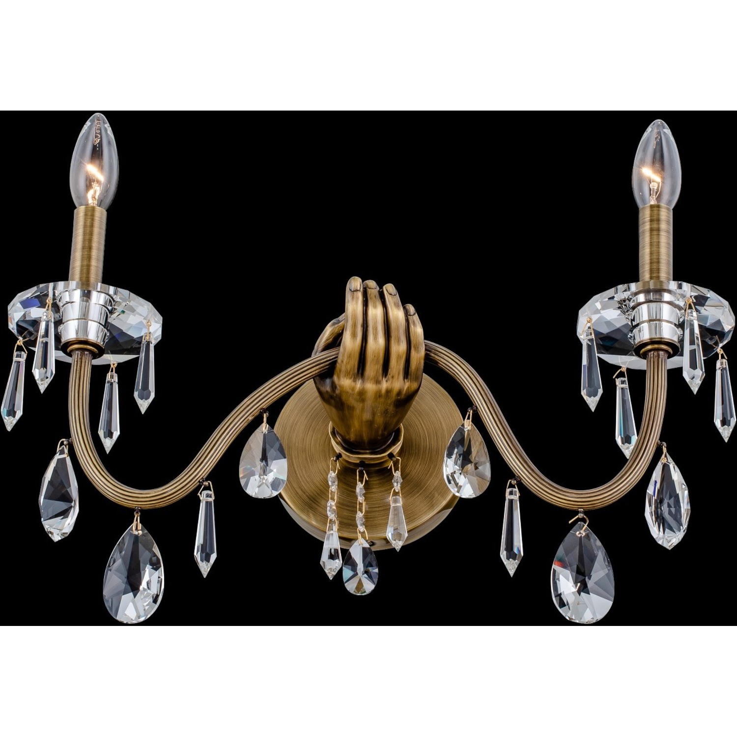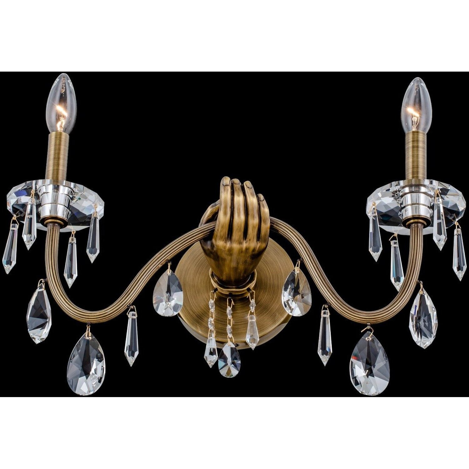 Inspired by the physical form and a sense of surrealism, Venere from the ILUMINE Collection by Vanessa DeLeon elicits curiosity for lighting as art. Cast solid brass crafted, featuring clear Firenze ™ crystal drops and bobeches. Available in Historic Bras2 Light Wall SconceE12 CandelabraDimmable: YDimmer Type: Refer to bulb manuf.Sockets: 2Wattage: 40Lamp Type: E12 CandelabraBulbs Incl#: NoMax Height: 11.5