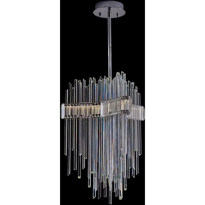 Piovere's avant-garde light sculpture celebrates individualism with a futuristic body adorned in random crystal curtains. This unique piece features hexagonal solid crystal rods between mirror-polished stainless plates, creating an unparalleled visual spe28" LED CCT PendantIntegrated LEDIncludes (1) 6" (1) 12" and (1) 24" StemsDimmable: YesDimmer Type: ELV Dimmers (not included)Wattage: 46Lamp Type: Integrated LEDColor Rendering Index (CRI): 90Bulbs Incl#: YesLumens (Lm): 4140