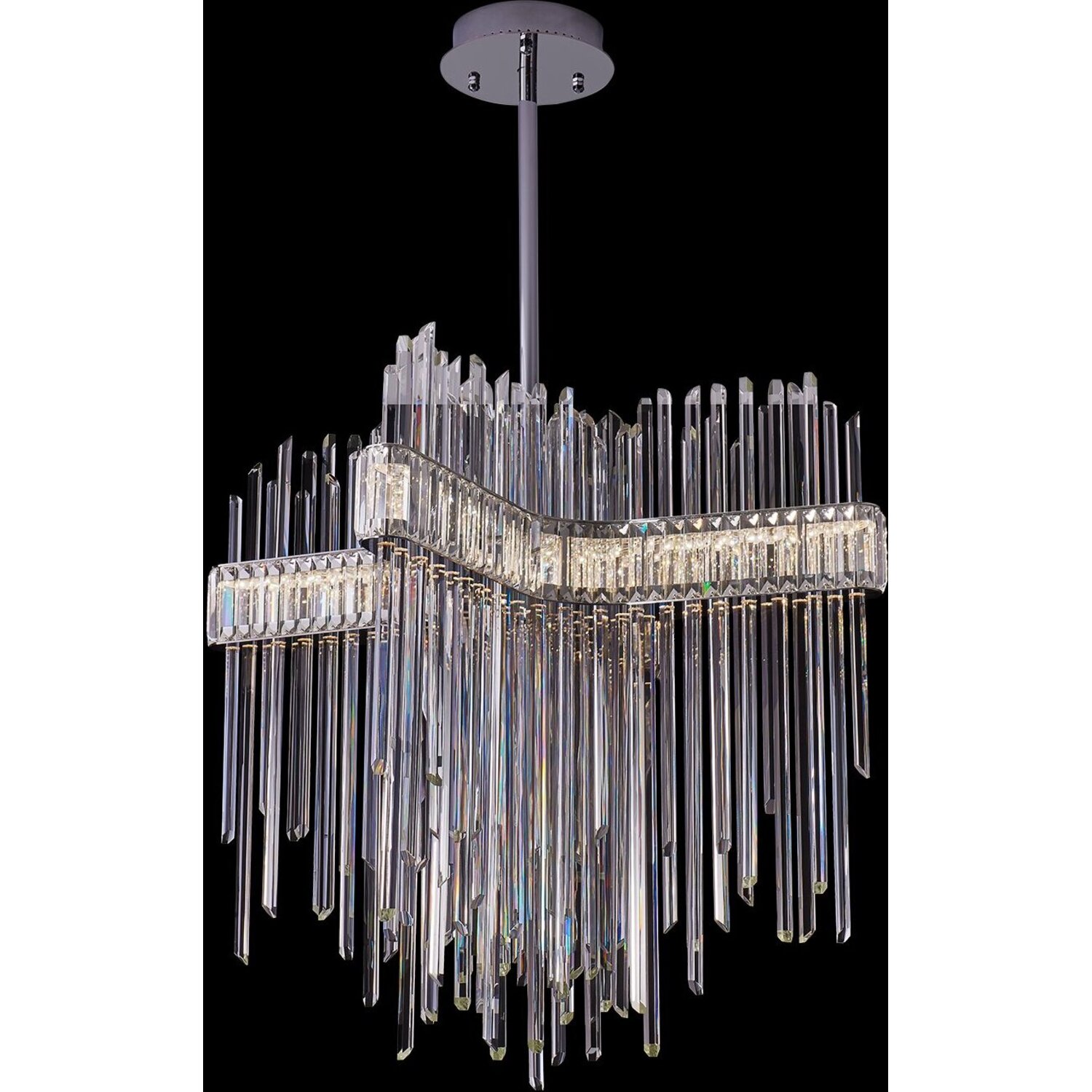 Piovere's avant-garde light sculpture celebrates individualism with a futuristic body adorned in random crystal curtains. This unique piece features hexagonal solid crystal rods between mirror-polished stainless plates, creating an unparalleled visual spe36" LED CCT PendantIntegrated LEDIncludes (1) 6" (1) 12" and (1) 24" StemsDimmable: YesDimmer Type: ELV Dimmers (not included)Wattage: 70Lamp Type: Integrated LEDColor Rendering Index (CRI): 90Bulbs Incl#: YesLumens (Lm): 4550