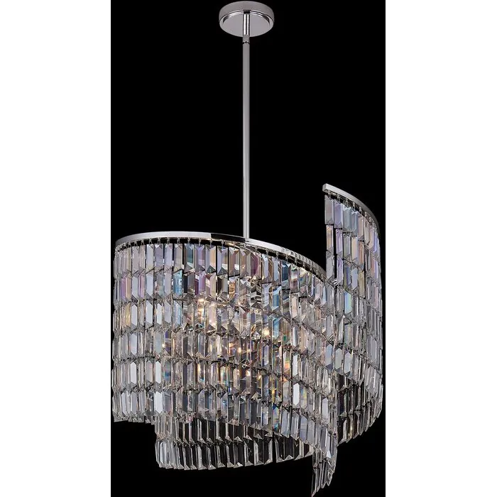 The soothing beauty of soft whirlpools in ponds inspires the Vortice collection. This fixture features shimmering iridescent crystals,meticulously arranged in a graceful waterfall pattern. The gentle play of light creates a mesmerizing ambiance, perfect f22 IN PENDANTE12 Candelabra(1)6 (1)12 (1)24 STEM KIT INCLUDEDDimmable: YesDimmer Type: Refer to bulb manufacturer for compatibilitySockets: 7Wattage: 40Lamp Type: E12 CandelabraBulbs Incl#: NoMax Height: 23