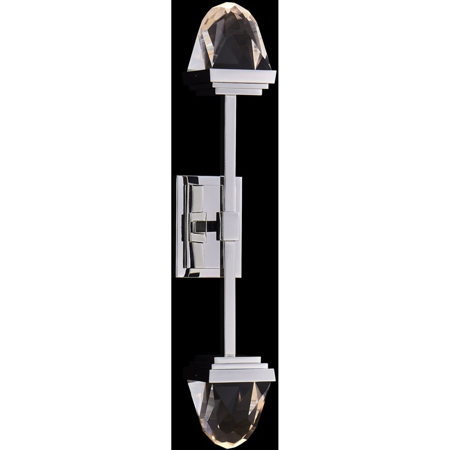 Drawing inspiration from jewelry design, the Taglio Wall Sconce Collection showcases a robust brass base supporting two large, intricately faceted solid crystal blocks. The clean, straight lines accentuate the distinctive, random cuts of the crystal. ThisLED POLISHED SILVER SCONCELED0Dimmable: YesDimmer Type: Triac (Dimmer Not Included)Wattage: 6Lamp Type: LEDColor Rendering Index (CRI): 90Bulbs Incl#: YesCorrelated Color Temperature (K): 3000Lumens (Lm): 840