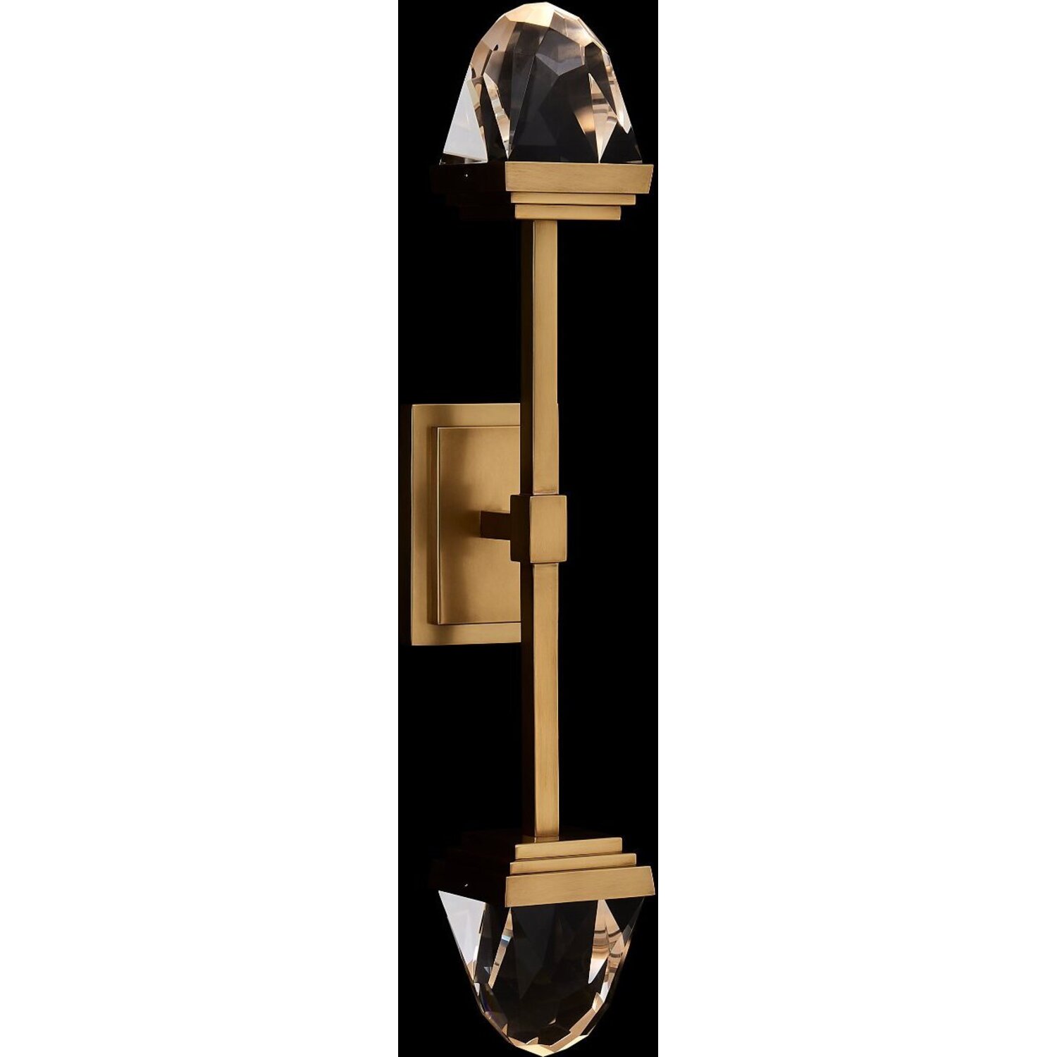Drawing inspiration from jewelry design, the Taglio Wall Sconce Collection showcases a robust brass base supporting two large, intricately faceted solid crystal blocks. The clean, straight lines accentuate the distinctive, random cuts of the crystal. ThisLED TRUE BRASS SCONCELED0Dimmable: YesDimmer Type: Triac (Dimmer Not Included)Wattage: 6Lamp Type: LEDColor Rendering Index (CRI): 90Bulbs Incl#: YesCorrelated Color Temperature (K): 3000Lumens (Lm): 840