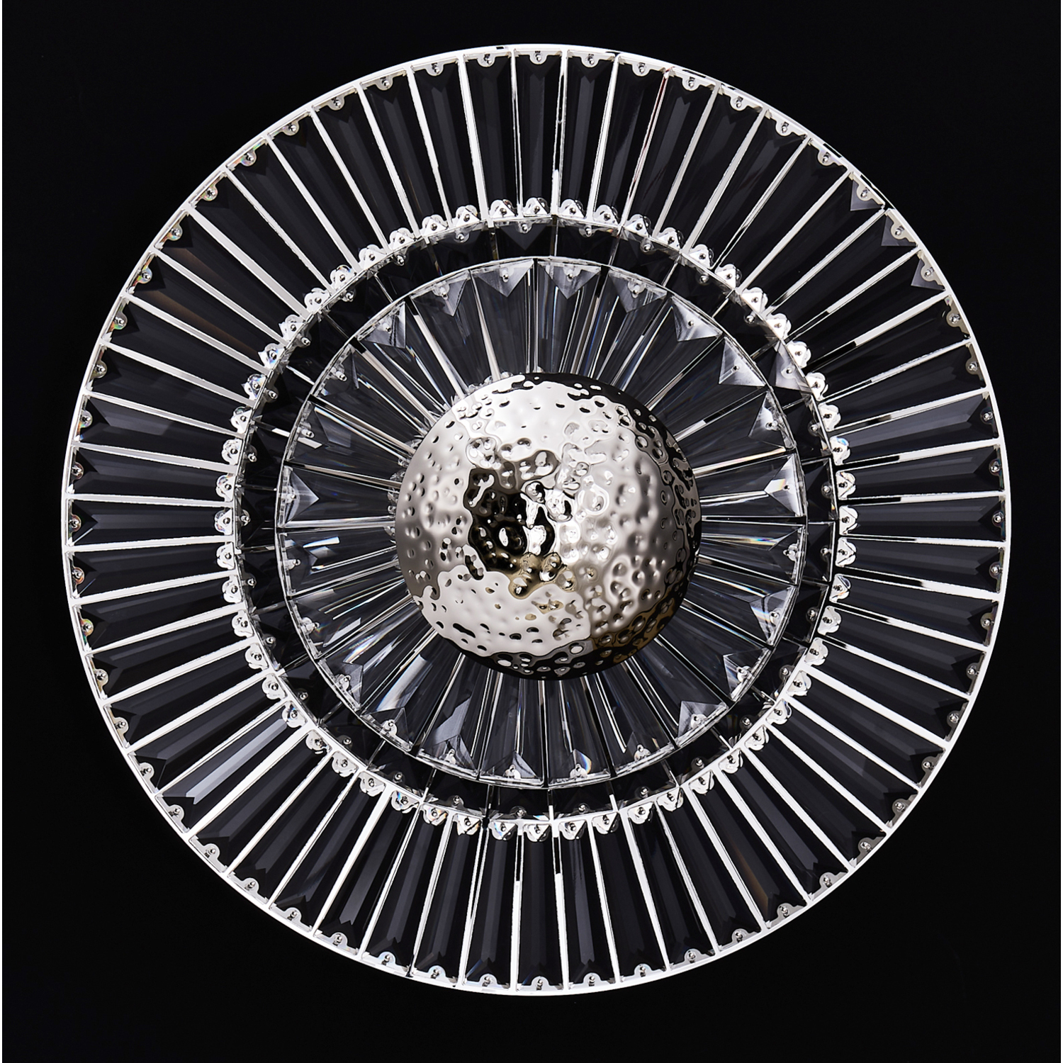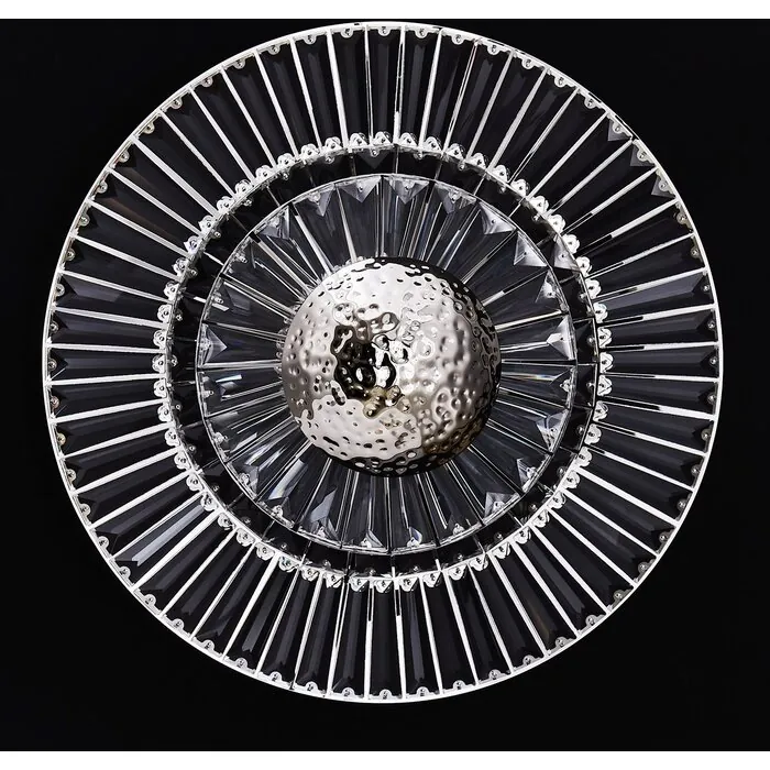 The Rosetta wall sconce/flush mount transforms your accent wall into a masterpiece of crystal art. Resembling a daisy with its hammered radial and layered crystal design, it features an integrated LED lamp that bathes the wall in mesmerizing crystal shimmWALL SCONCELED0Dimmable: YesDimmer Type: ELV (Dimmer Not Included)Wattage: 9Lamp Type: LEDColor Rendering Index (CRI): 90Bulbs Incl#: YesCorrelated Color Temperature (K): 3000Lumens (Lm): 950