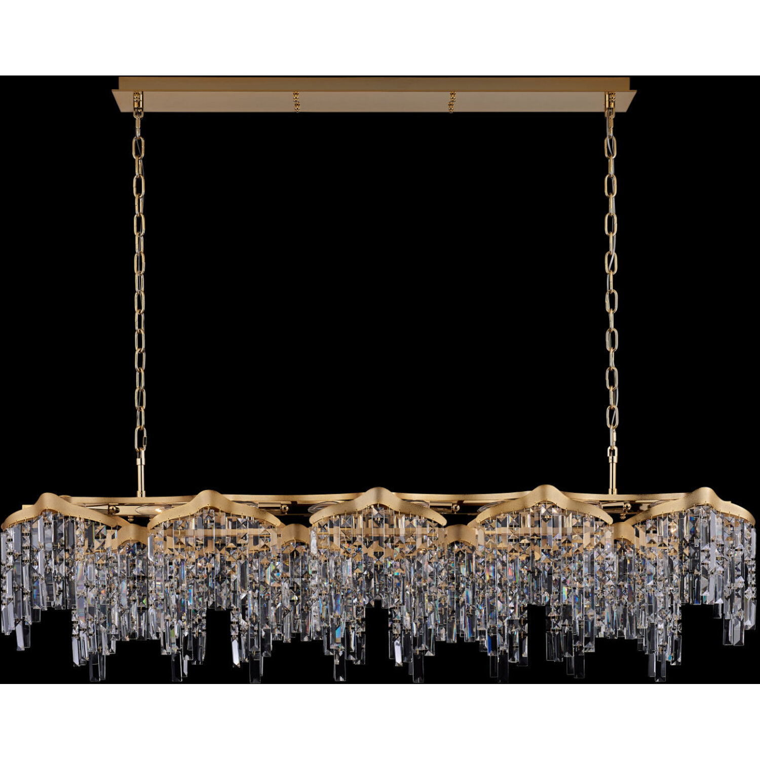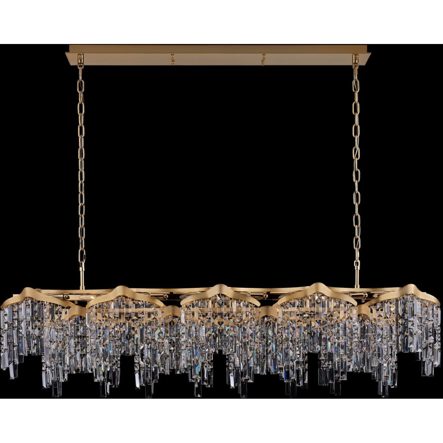 The Cadere Collection captivates the eye and sparks intrigue with its mesmerizing visual texture. Drawing inspiration from cascading waterfalls, this collection showcases vertical Firenze Crystals suspended from an undulating steel frame. Elegantly finishISLAND LIGHTE12 Candelabra0Dimmable: YesDimmer Type: Refer to bulb manufacturer for compatibilitySockets: 24Wattage: 40Lamp Type: E12 CandelabraBulbs Incl#: NoMax Height: 19